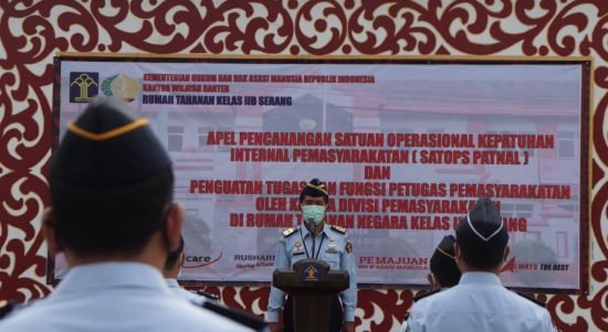 SERANG – Rumah Tahanan Negara (Rutan) Kelas IIB Serang menggelar Apel Pengukuhan Satuan Operasional Kepatuhan Internal Pemasyarakatan (Satops Patnal) Tahun 2021 dan Penguatan